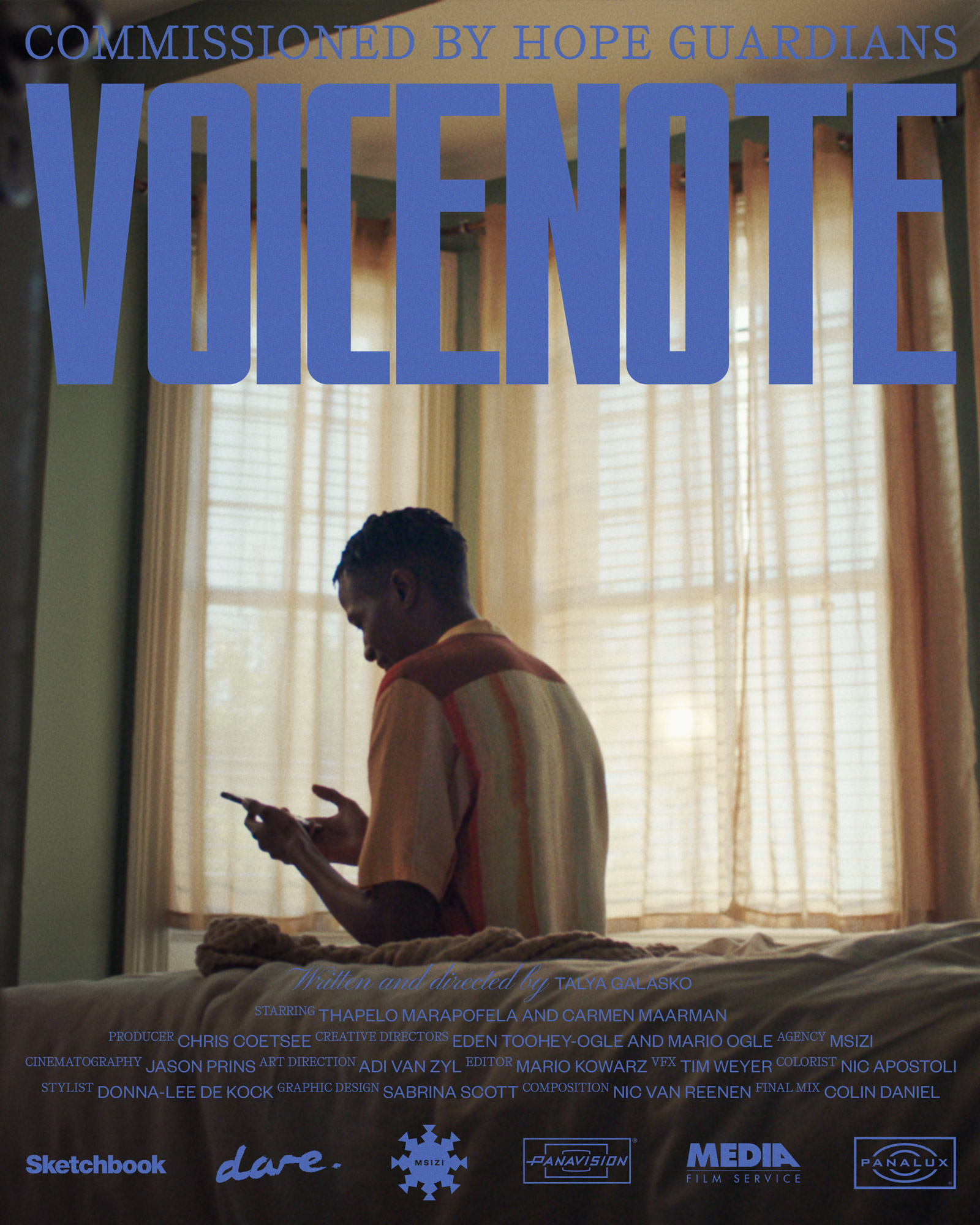Visual identity for Voicenote, a short film directed by Talya Galasko for Hope Guardians – an NGO offering free online one-on-one therapy to young adults globally. Best of the Month on Vimeo and shortlisted for a Young Director Award.
